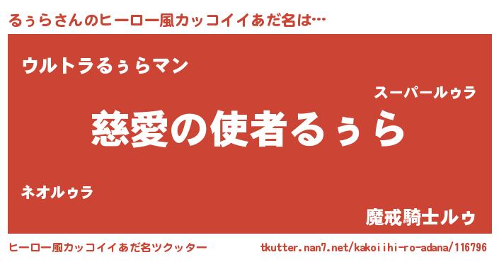 | 女子向けラノベタイトル風あだ名 | 『死神るぅらの再婚』『るぅら伯爵の花嫁』 |