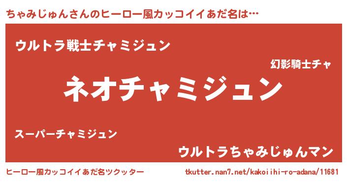 | 男性向けラノベタイトル風あだ名 | 『ちゃみじゅんという概念が存在しない退屈な世界 』 |