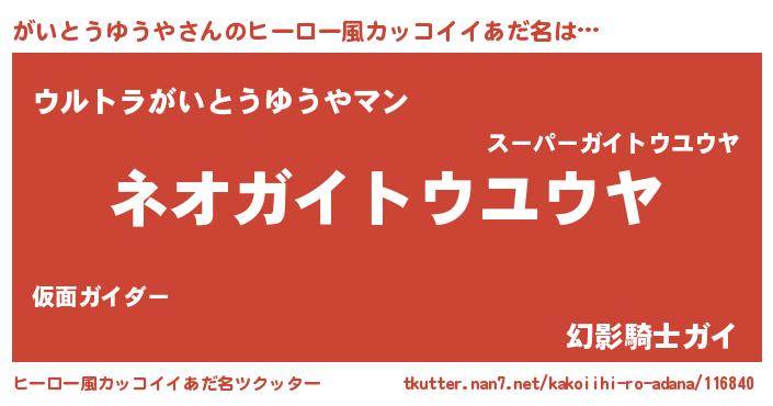| ヘコむあだ名 | 『がいとうゆうや(苦笑)』『なまこ酢』 |