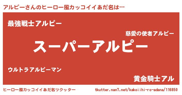 | 意味不明あだ名 | 『ペロリンアルピー』『自称アルピー』 |