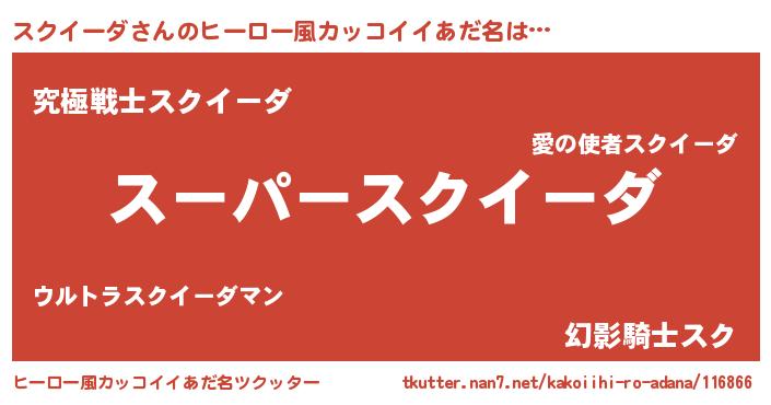 | 恥ずかしいあだ名 | 『プリティースクイーダ』『スクリンリン』 |