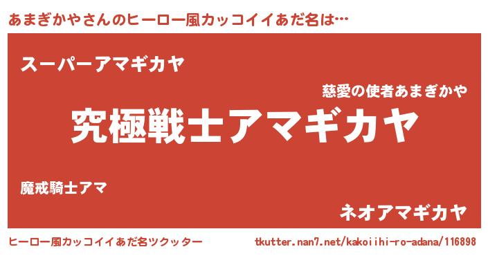 | 女子向けラノベタイトル風あだ名 | 『あまぎかやの玉の輿計画!』 |