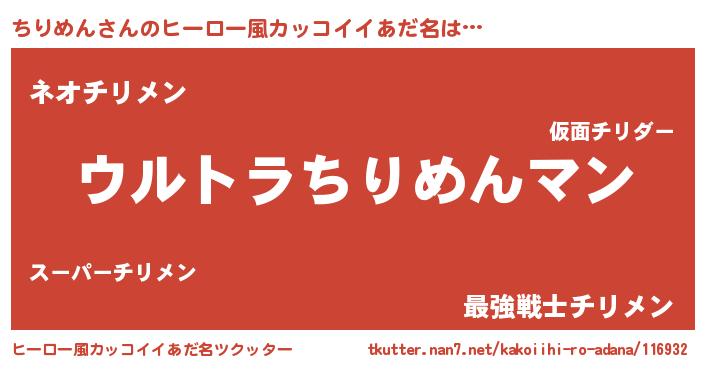 | 男性向けラノベタイトル風あだ名 | 『チリメンスレイヤー』 |