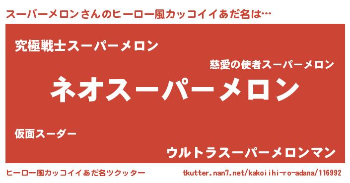 | 男性向けラノベタイトル風あだ名 | 『スーパーメロンスレイヤー』 |