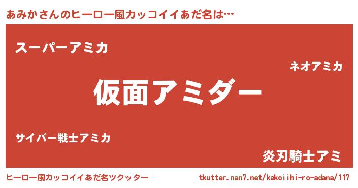 | 男性向けラノベタイトル風あだ名 | 『この素晴らしい世界にあみかを!』 |