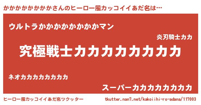 | 男性向けラノベタイトル風あだ名 | 『Re:かかかかかかかかから始める異世界生活』 |