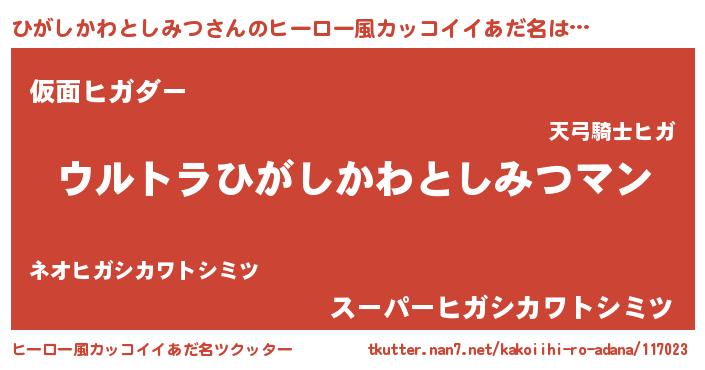 | ファンタジー風あだ名 | 『エターナルヒガシカワトシミツー』 |