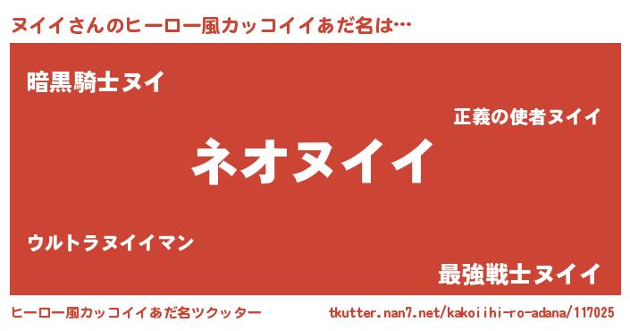 | ポケモン風あだ名 | 『ヌイゴンZ』『ゼニヌイ』『ヒヌイイ』 |