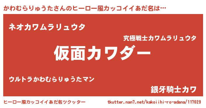 | 男性向けラノベタイトル風あだ名 | 『この素晴らしい世界にかわむらりゅうたを!』 |