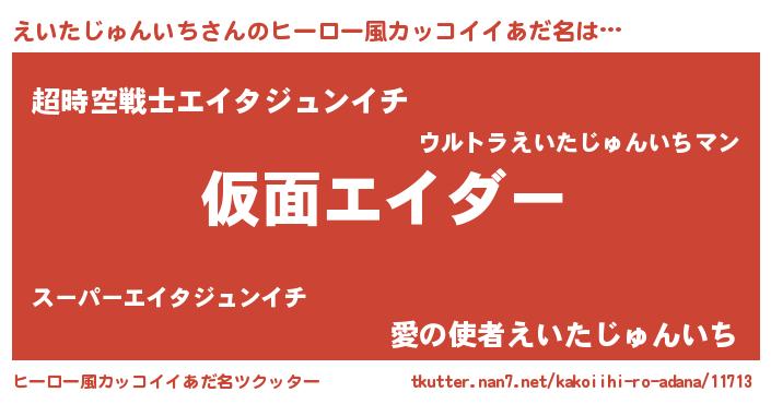 | 男性向けラノベタイトル風あだ名 | 『この素晴らしい世界にえいたじゅんいちを!』 |