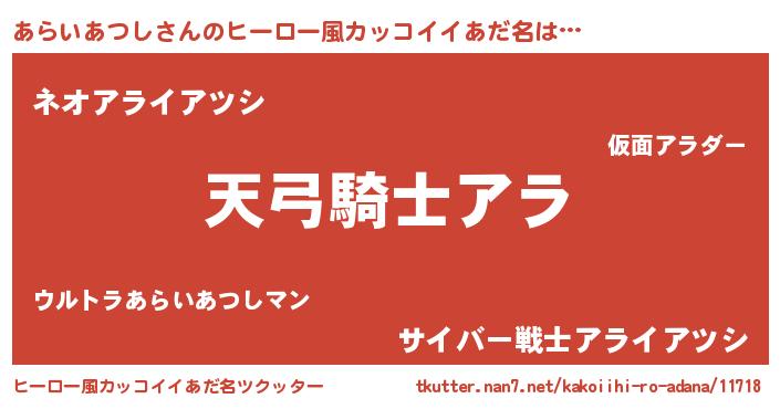 | 女子向けラノベタイトル風あだ名 | 『あらいあつし様がみてる』 |