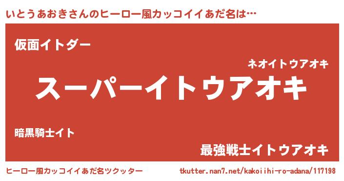 | 男性向けラノベタイトル風あだ名 | 『転生したらいとうあおきだった件』 |