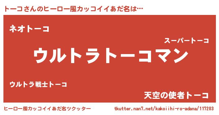 | 男性向けラノベタイトル風あだ名 | 『トーコスレイヤー』 |