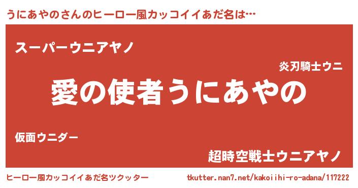 | 女子向けラノベタイトル風あだ名 | 『うにあやの恋絵巻』 |