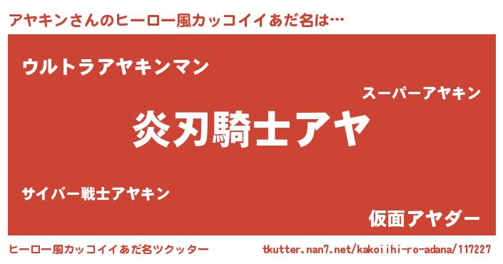 | 女子向けラノベタイトル風あだ名 | 『アヤキン様がみてる』 |