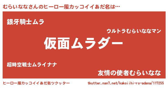 | 男性向けラノベタイトル風あだ名 | 『この素晴らしい世界にむらいななを!』 |
