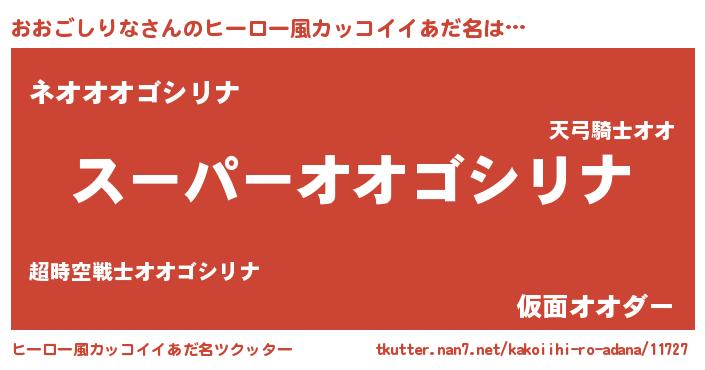 | 女子向けラノベタイトル風あだ名 | 『おおごしりなの玉の輿計画!』 |