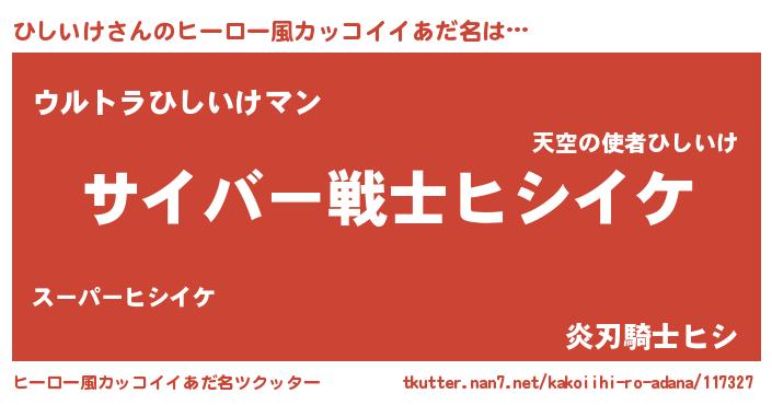 | 男性向けラノベタイトル風あだ名 | 『転生したらひしいけだった件』 |