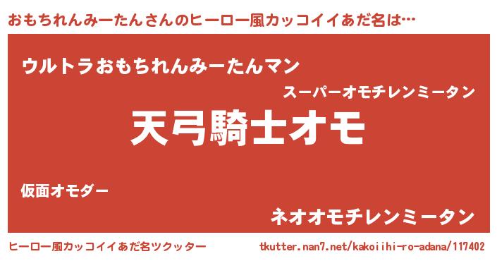 | 男性向けラノベタイトル風あだ名 | 『おもちれんみーたんの嫁は女の子じゃないと思った?』 |