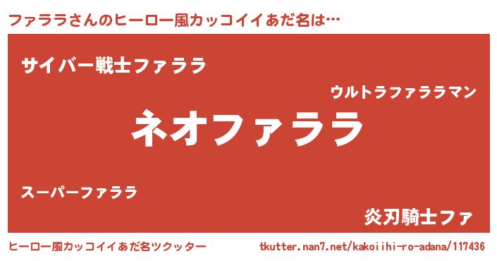 | 意味不明あだ名 | 『永久保存ファララ』『自称ファララ』 |