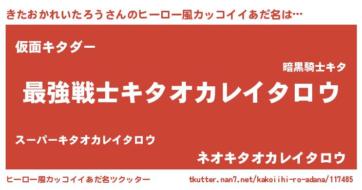 | 男性向けラノベタイトル風あだ名 | 『きたおかれいたろう~年齢イコール彼女いない歴の魔法使い~』 |