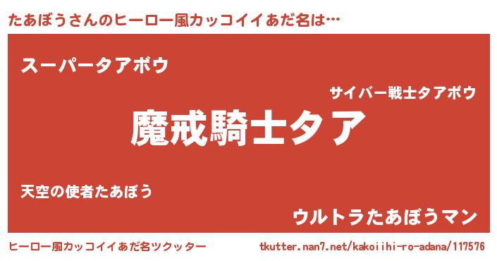 | 胡散臭い通販商品みたいなあだ名 | 『信頼と実績のペンダント…その名も「たあぼう」』 |