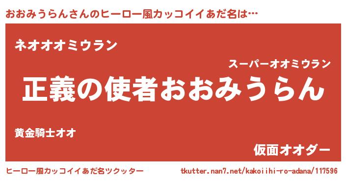 | 男性向けラノベタイトル風あだ名 | 『おまえをオタクにしてやるから、俺をおおみうらんにしてくれ! 』 |