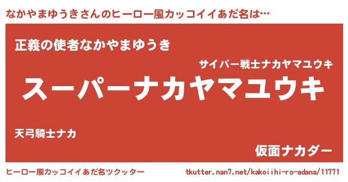 | 男性向けラノベタイトル風あだ名 | 『なかやまゆうきの憂鬱』 |