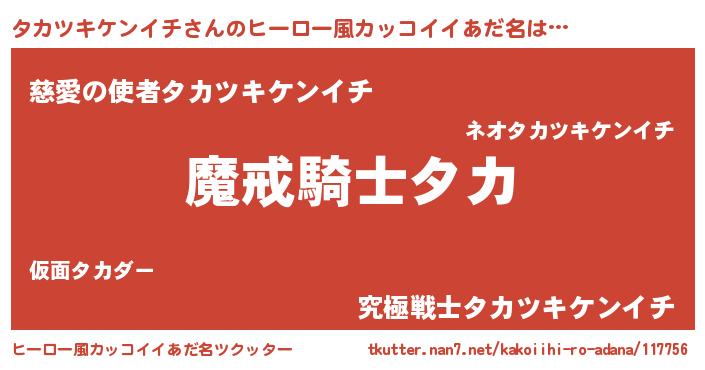 | 男性向けラノベタイトル風あだ名 | 『転生したらタカツキケンイチだった件』 |