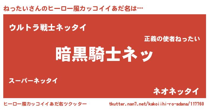 | 胡散臭い通販商品みたいなあだ名 | 『信頼と実績のサプリメント…その名も「ねったい」』 |