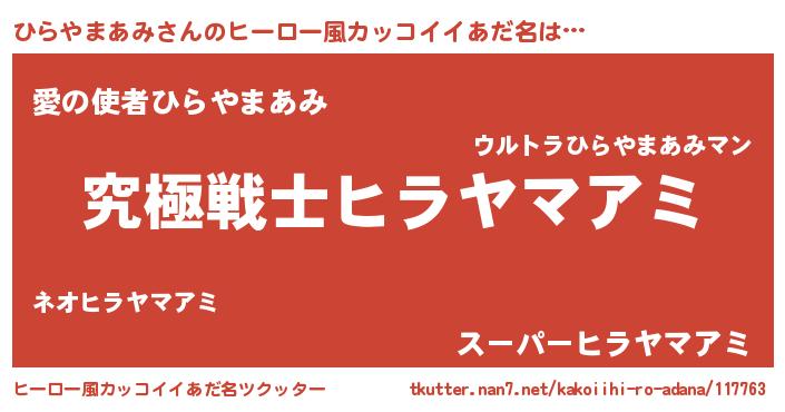 | 男性向けラノベタイトル風あだ名 | 『Re:ひらやまあみから始める異世界生活』 |