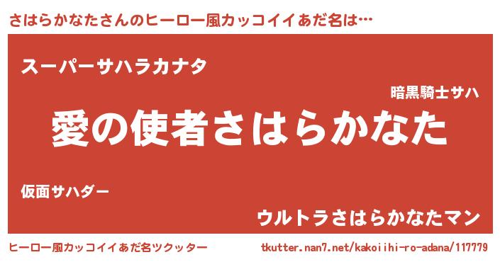 | 男性向けラノベタイトル風あだ名 | 『転生したらさはらかなただった件』 |