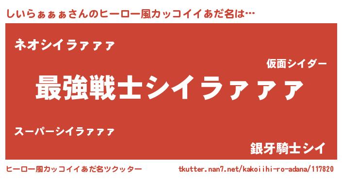 | 男性向けラノベタイトル風あだ名 | 『Re:しいらぁぁぁから始める異世界生活』 |