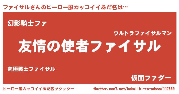 | ポケモン風あだ名 | 『フックウザ』『ヒファイサル』 |