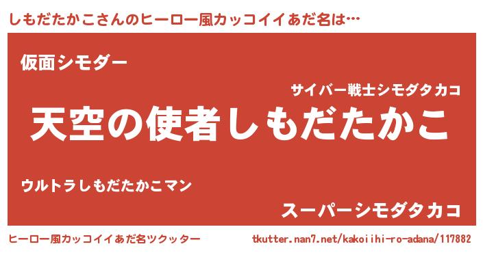 | 女子向けラノベタイトル風あだ名 | 『死神しもだたかこの再婚』 |