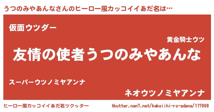 | 男性向けラノベタイトル風あだ名 | 『おまえをオタクにしてやるから、俺をうつのみやあんなにしてくれ! 』 |