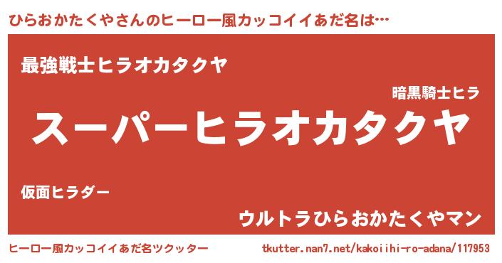 | 意味不明あだ名 | 『ペロリンひらおかたくや』 |