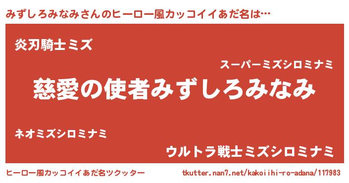 | ポケモン風あだ名 | 『ミックウザ』『ヒミズシロミナミ』 |