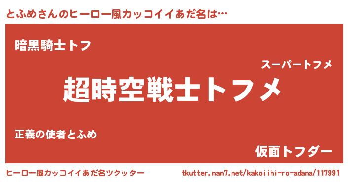 | 男性向けラノベタイトル風あだ名 | 『トフメスレイヤー』『緋弾のトフメ』 |
