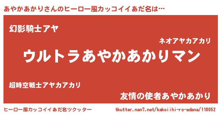 | ポケモン風あだ名 | 『アヤカダネ』『ヒアヤカアカリ』 |