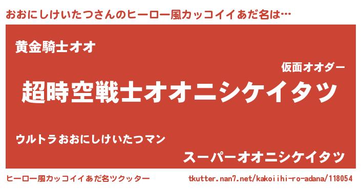 | 意味不明あだ名 | 『自称おおにしけいたつ』 |
