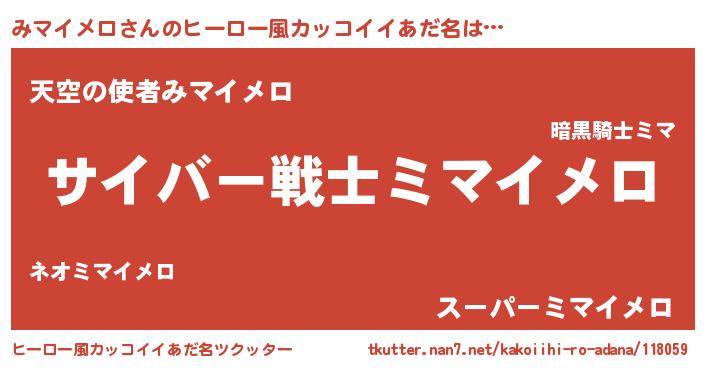 | 男性向けラノベタイトル風あだ名 | 『魔法科高校のみマイメロ』 |