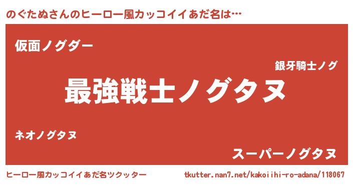 | 男性向けラノベタイトル風あだ名 | 『のぐたぬに滅ぼされるだけの簡単なお仕事です』 |