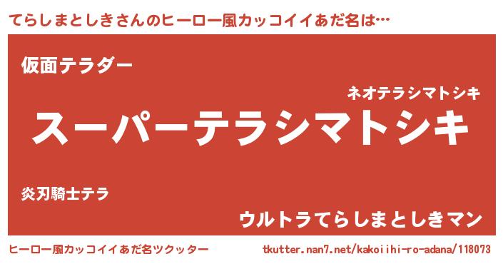 | 恥ずかしいあだ名 | 『プリティーてらしまとしき』『てらちん』 |