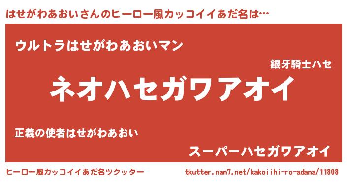 | 女子向けラノベタイトル風あだ名 | 『異世界で失敗しない100のはせがわあおい』 |