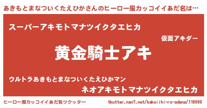 | 伝説のあだ名 | 『孤高の僧侶あきもとまなついくたえひか』 |