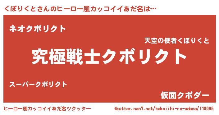 | 男性向けラノベタイトル風あだ名 | 『Re:くぼりくとから始める異世界生活』 |
