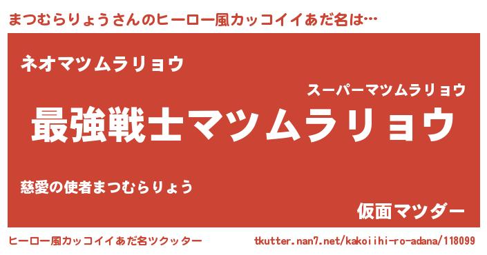 | 意味不明あだ名 | 『自称まつむらりょう』 |