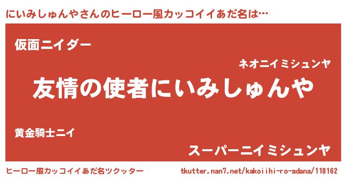 | 男性向けラノベタイトル風あだ名 | 『転生したらにいみしゅんやだった件』 |