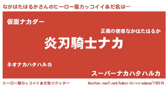 | 男性向けラノベタイトル風あだ名 | 『なかはたはるかの嫁は女の子じゃないと思った?』 |